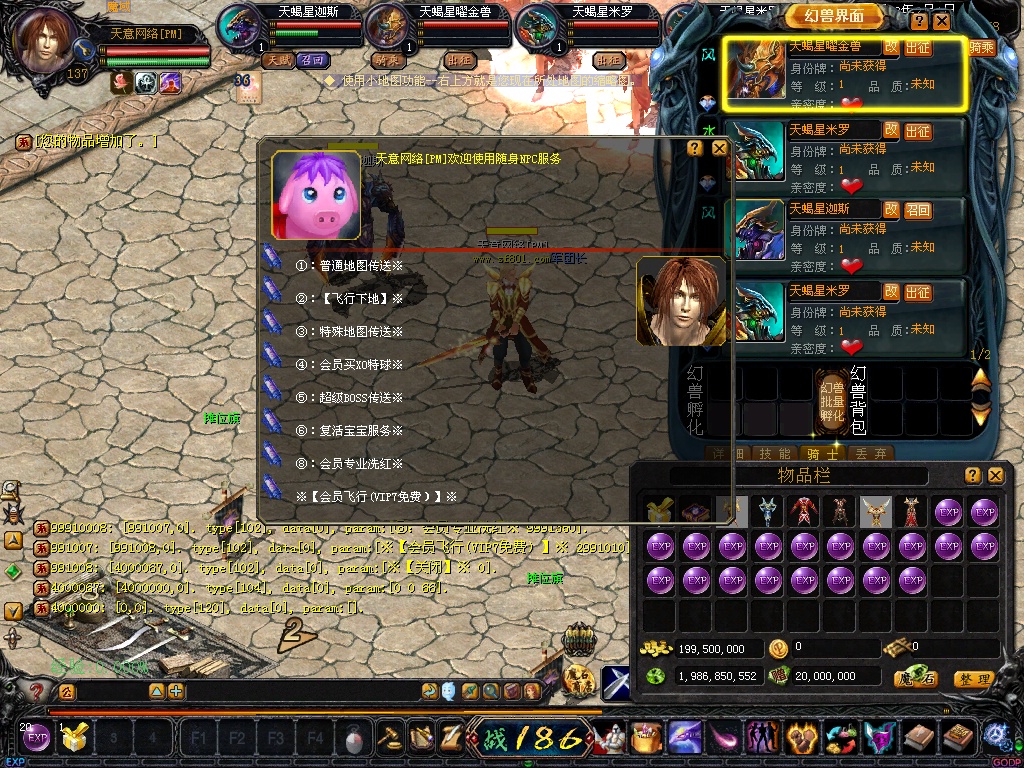 5、设置上线VIP5,VIP6打怪进包150点,VIP7打怪进包200点