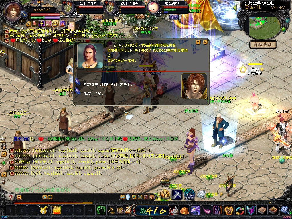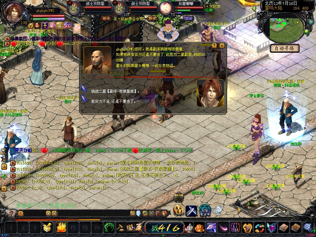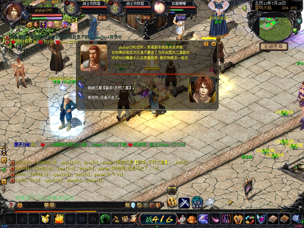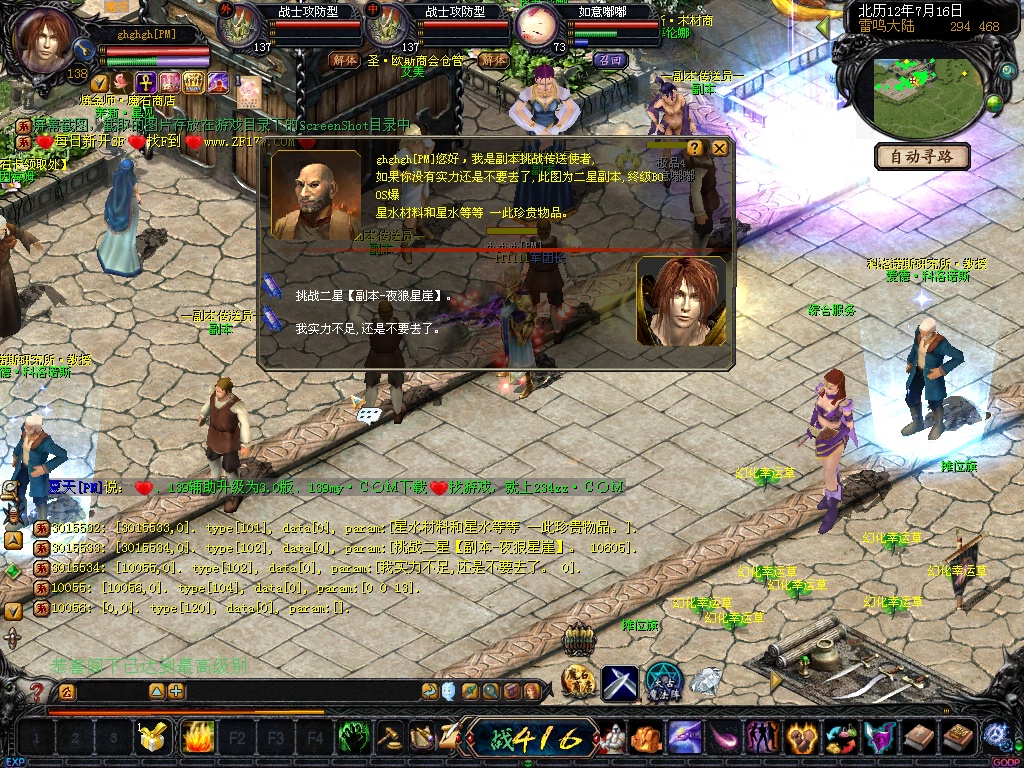 1:本服最新添加了官方副本:冰封虫穴,不朽之墓. 里面刷了 超级BOSS 难度极大,建议组队,找BOSS挑战去吧.