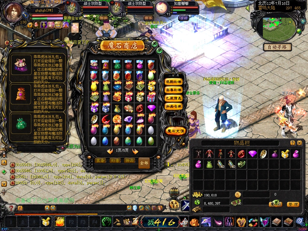 冒险经验石礼包,打开获得2号神迹石,进入挑战就有机会获得2倍,27倍,138倍魔石礼包,觉得自己运气好的去挑战吧!