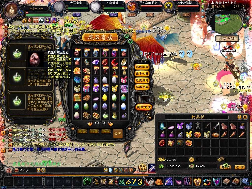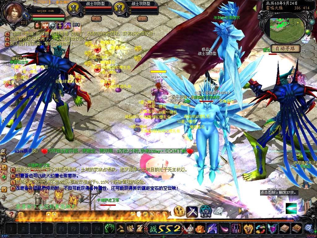 【新手配置】:上线+255装备 送255级 VIP4 每怪自动进包魔石 超级刺激!