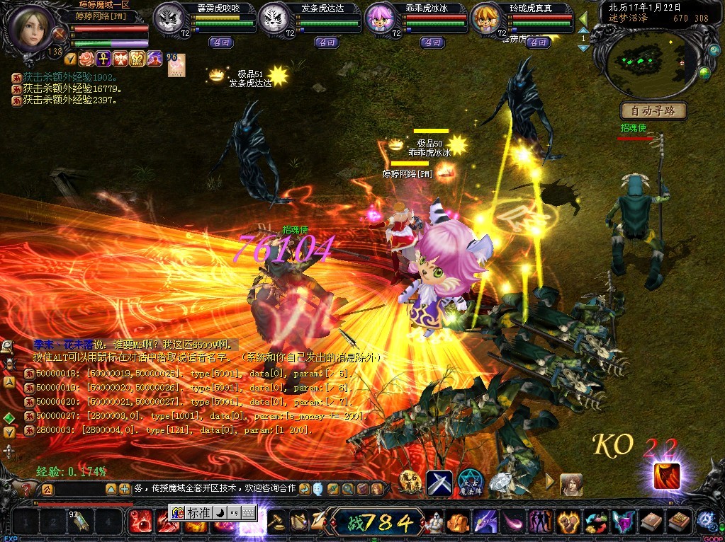 【游戏特色】全怪爆南瓜饼,上交给“悲情法师”有一定机率获得1-5万魔石自动入包,神谕之石等物品