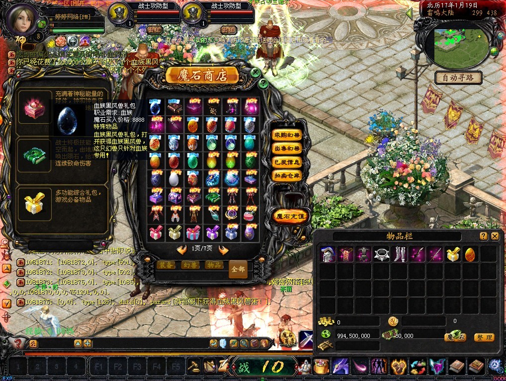 魔石比例1元=600万(网银赠50%,点卡30%)