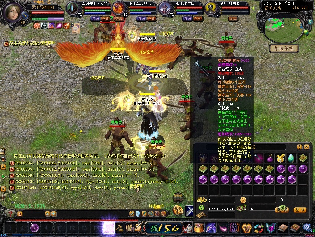 本服同步官方,最高装备125级的+12极品2空洞战魂8的装备,全部自己打造超级乐趣