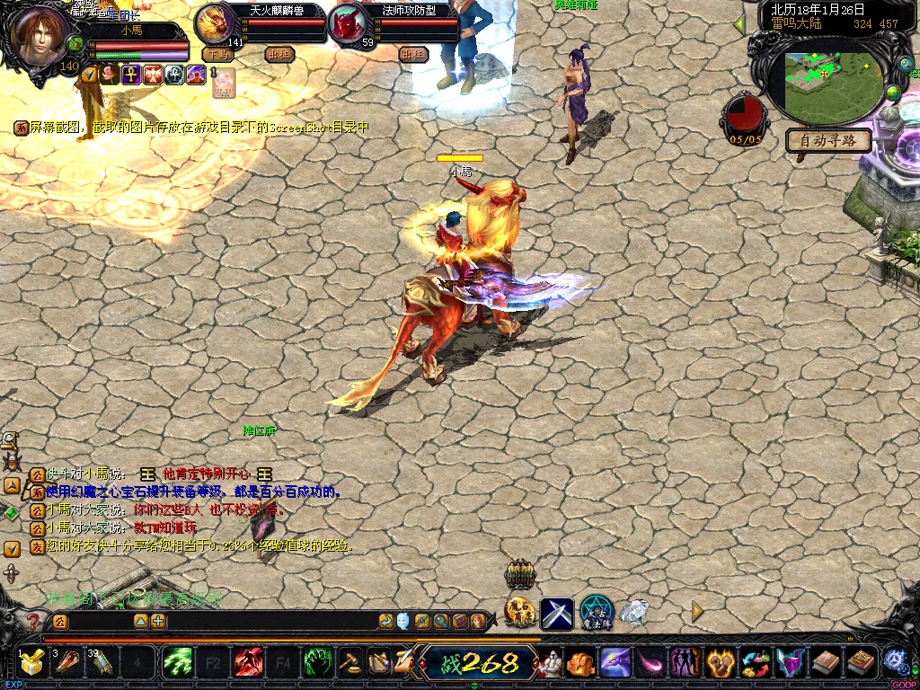 4:第三关血关开始挑战的时候你在长廊里面走一步会掉一次血,必须使用血包血量少了重新开始!完了挑战BOSS获得火神珠!