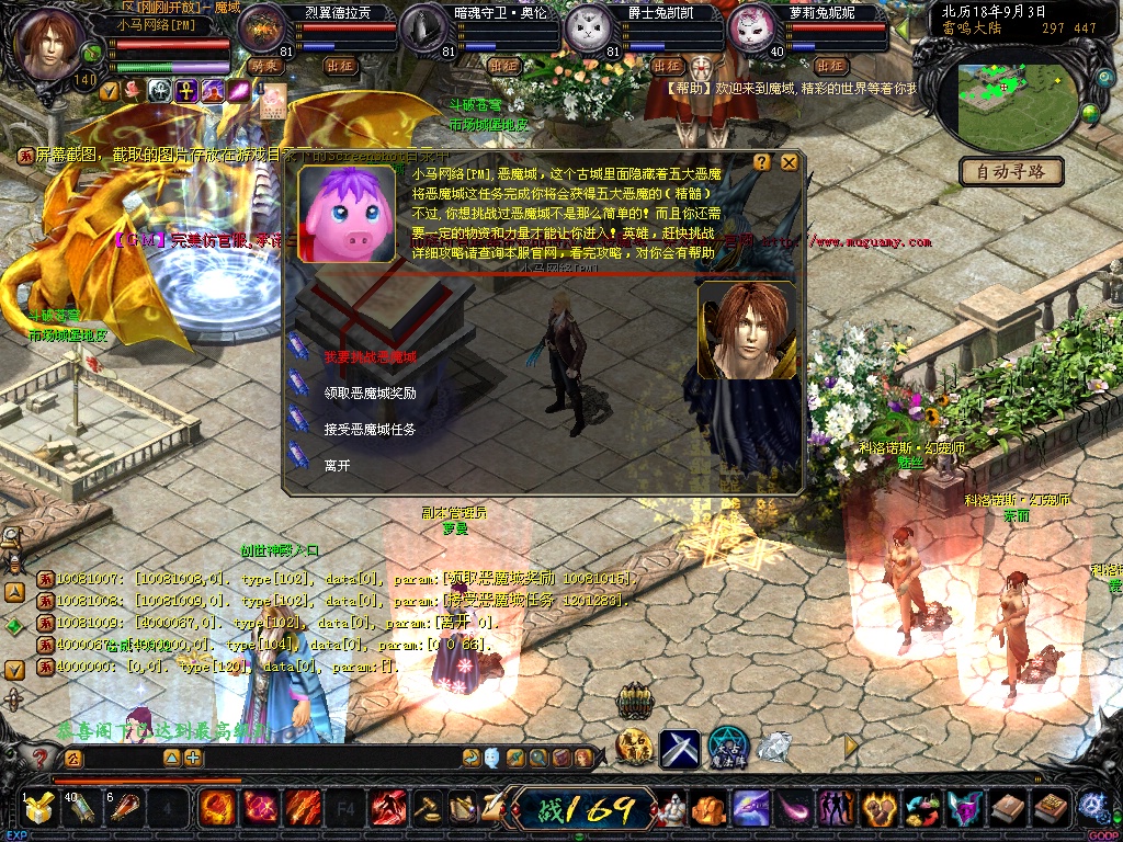 7: 加入恶魔城挑战本服重点推荐,难度极高,!可以组队进入寻宝,队长进入队员就自动进入的!奖励超高!