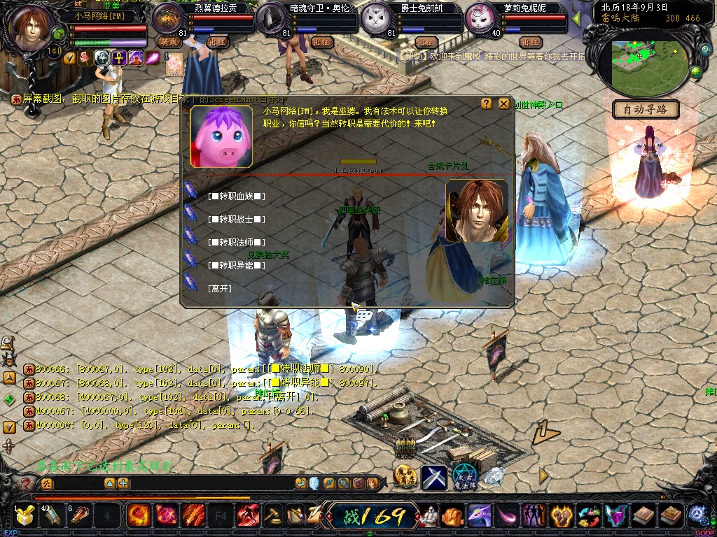 ,会自动寻路到任务开始的地方,然后做2分钟左右的任务,将任务做完会自动寻路回来到恶魔城传送猪[注意: