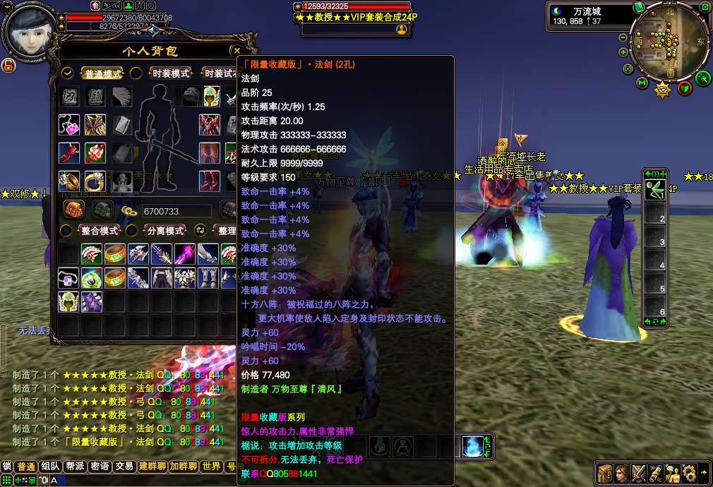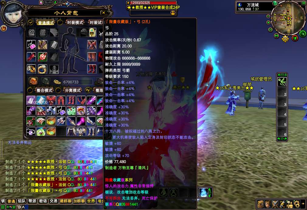 更新说明:1.更新军衔系统13级军衔 450W声望!「14级军衔」500W声望.「15级军衔」 600W声望.「16级军衔」 700W声望.「17级军衔」 900W声望.「18级军衔」 1200w声望2.更新限量版书页合成<让所有玩家都可以拿上限量版的武器,不需要再和会员挣抢野外BOSS了>:请到24品合成那合成:具体材料请大家进游戏查询!!3.修复通用战宠合成的BUG,改成材料合成,请到特殊道具合成那合成:具体材料请大家进游戏查询!!8月10日上午10点已更新:24品武器打孔功能,您不会再嫌弃自己的武器攻击低了,如果是一洞,那您还等什么呢,赶紧去司令合成那打洞吧,几率为50% <人品+运气=孔的数量> 最高2孔~~更新后24品武器均不可以交易,装备首饰可以交易~~友情提示:游戏中的终极法魂石和会员的终极法魂石的属性是一样的,游戏中显示不正确!请大家互相转告~【版本介绍】: 请大家爱护游戏环境,大家公平竞争,拒绝秒挂.点击查看秒挂标准※双倍爆率地图,300级玩家可以进入或者每天晚上8-9点可以进入。※新手每天报到奖励,只要您每天上线了就可以领取奖励.只要连续上线八天,将可以合成全服最好属性的披风:「限量珍藏版」披风。※添加限量版披风,武器,戒指,攻击和属性都是最上乘的。【武器有攻击等级属性】※在线泡点功能,2小时奖励5个幸运金蛋<可以开出所有材料+会员装备>※挖宝活动,飞来镇每30分钟刷新一次,每次4个宝箱,【能挖出会员装备哦】※本服22-24品可以机枪枪。22-24品可以大瞬<22品以下均不可以瞬发> 【注意:法师必须是套装】※八折VIP卡,持有此卡购买会员8折优惠。各大BOSS都有几率爆出!!※新增「变种」大力神 和 「变种」飞天猪 所有玩家出门必带宠物哦!※超炫武器外观,全新多种玩法,多样武器外观变化,集美观新颖,交友温馨,打架激情于一体。※所有装备精练后都会大大增加属性基本在2-3倍左右哦!!※添加官方最新时装,飞机,坐骑。让您眼花缭乱!!※所有特色稀有观宠/飞宠/坐骑/时装商店低价购买,包裹跟宠物笼全部扩充好,地图全开!※本服取消乾坤袋,购买物品请到万流 商人NPC购买※结婚系统保存几率为50% 请玩家结婚后尽量半小时内不要下线※本服承诺,绝对公平稳定长久,家族进服一律不给任何待遇,所有物品在游戏中均可获得,普通玩家只要多花点时间与耐心,与会员一样厉害。【上线设置】:本服上线万流安全区 上线150级, 修真大乘【双修一秒】 17品套装一套 仙魔技能书各一套<仙技能书在仓库>。声望450W→【可以去军衔领取使者那领取13军任务 然后去远征营地杀掉5个美人鱼最后获得13军套】. 注意:上线赠送的4个二级攻击石头,是给您准备打在19品武器上面的,切记请别卖到商店了,不然后面说打着BOSS累,请别怪客服!!希望大家相互转告!! 包袱赠送一个新手指导,如果您不知道材料的出处和BOSS的坐标,您可以一览新手指导,方便所有玩家不用看网站就知道在哪刷材料了。【装备顺序】:装备依次顺序为:新手送的【班长】——19品【排长】 —20品【连长】— 加强20品【营长.团长】 — 21品【旅长】 —22品【师长】 — 23品【军长】 — 24品【司令】。军衔依次顺序为:新手送的【13军★40W声望】——20品【14军★500W】 —21品【15军★600W】— 22品【16军★700W】 — 23品【17军★1000W】 —24品【18军★1400w】以上的装备请所有玩家游戏体验。注意:【装备品数相等的装备属性也相等】【副本介绍和材料出处】:材料图片教您该去哪49副本爆出: 爆出: 【排长】成品套装59副本或渔村 爆出 【★军人之魂★】 【★军人之魄★】 【★军人之灵★】 合成:20品【连长】59副本和飞来镇 爆出 【★★军官证★★★】 此材料为通用材料.可以合成任意材料 合成 :【营长.团长】89魔副本 爆出 〓完〓 〓美〓 〓世〓 〓界〓 合成:21品【旅长】89魔副本 爆出 〓完〓 〓美〓 〓世〓 〓界〓 合成 :22品【师长】89仙副本 爆出 〓金〓星珠 〓木〓星珠 〓水〓星珠 〓火〓星珠 〓土〓星珠 合成:23品【军长】89仙副本 爆出 〓金〓星珠 〓木〓星珠 〓水〓星珠 〓火〓星珠 〓土〓星珠 合成:24品【司令】神月副本和飞来 爆出 〓等级卡〓夜郎和夜哭小怪 爆出 〓声望牌〓 分为:200-10000不等的声望牌 【为了玩家考虑声望牌多了点的累,积累100个声望牌可以去WL声望牌换取员直接换取声望】【野外BOSS介绍】:〓凤姐〓会员武器 坐标 夜郎 123.319 103.321 【每3小时刷新一次 每次2个 每个必爆一样】〓凤姐〓会员首饰 坐标:通天糊 414.588 431.588 【每3小时刷新一次 每次2个 每个必爆一样】〓凤姐〓会员披风头盔 坐标:太极滩 583.984 575.993 【每3小时刷新一次 每次2个 每个必爆一样】「轮回·天尊」神器 坐标:万流城北郊 101.865 99.875 【每4小时刷新一次 每次2个 每个必爆一样】「轮回·魔尊」限量 坐标:夜郎 116.324 【每2小时刷新一次 每次1个 每个必爆2样.注意此BOSS爆的是材料.合成终极武器和戒指的必备材料】 友情提示:游戏中除了军衔装备24品武器和限量武器外其它套装均可交易!【任务系统】:每天报到奖励:只要每天上线报到后系统就会赠送您:二张无敌符和 俦具:「限量披风」加强版 两个 【集齐15个将可以合成限量版披风,全服属性最好的】金蛋声望任务:完成任务后系统会赠送您2000声望和幸运金蛋一个【幸运金蛋能开出所有材料和会员装备】在线泡点奖励:每2小时系统会赠送您5个幸运金蛋 【幸运金蛋能开出