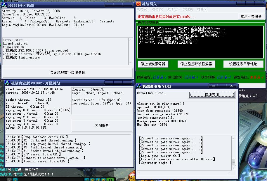 3、启动D:JZserverACCServer里的启动保护.exe。然后在按启动游戏服务器等ACC,MSG,NPC启动后即架设成功