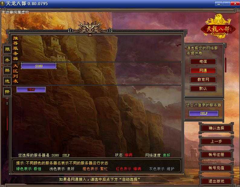 4.架设完成后登陆游戏时“网络服务提供商”最好选择“网通”我选“电信”新建人物后无法登陆游戏