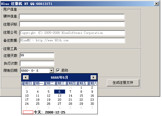 这里有一种新款,BLUE1008M2注册机.可以时间随便的调整...