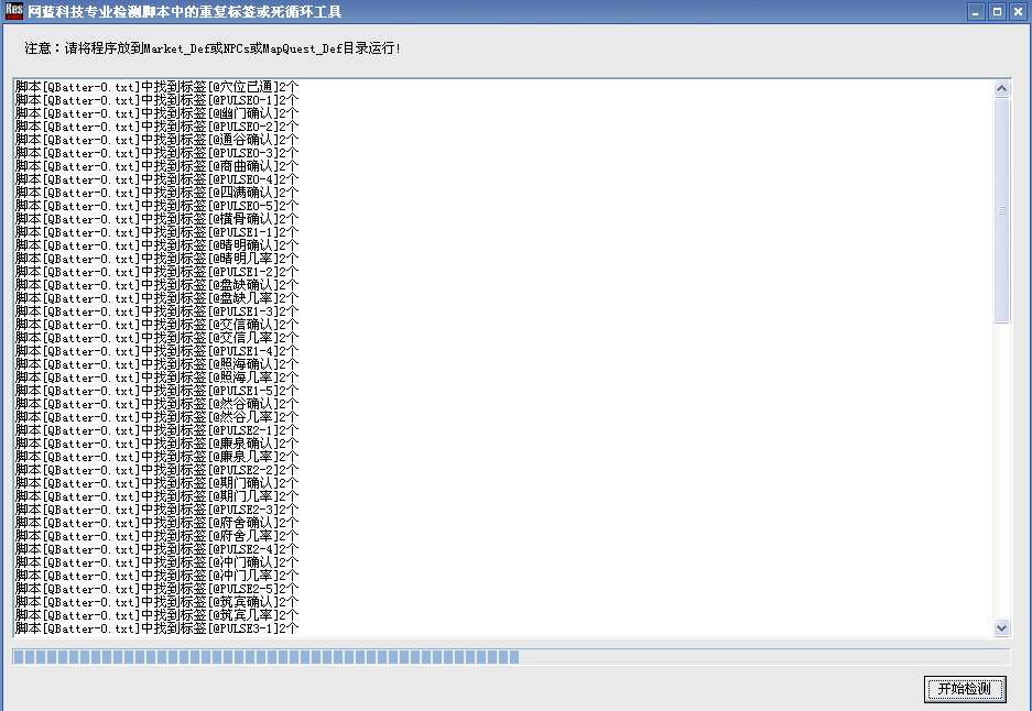 使用方法:把改程序放到传奇目录D:MirserverMir200EnvirMarket_Def目录下面 进行检测脚本的死循环和死链接。