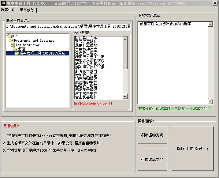 177网络独家风险 - 爆率修改工具 更新日期: 2010年12月18日