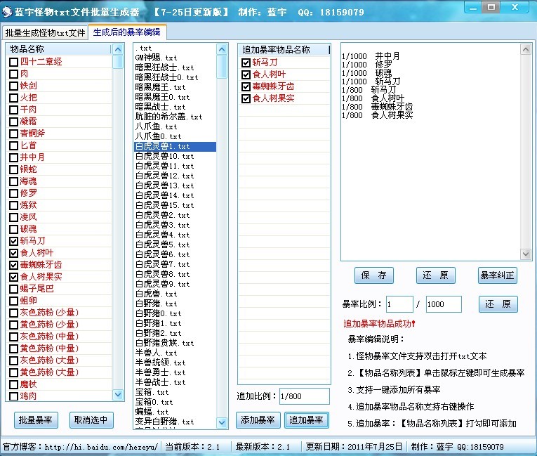 立即下载蓝宇怪物文件批量生成器v0725更新版