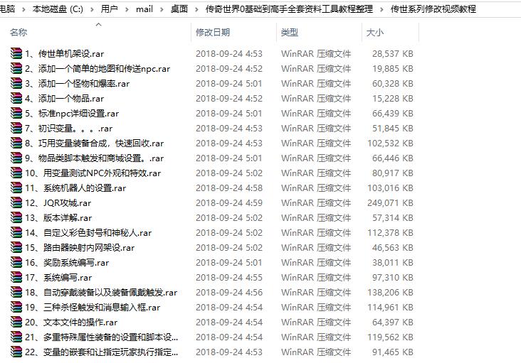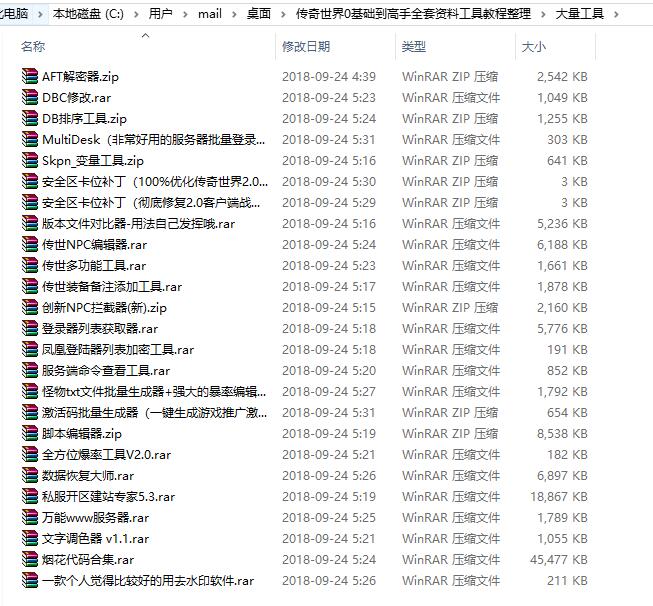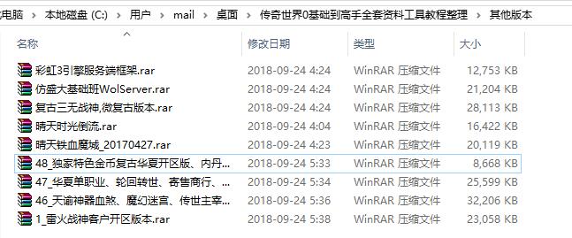 精心整理传奇世界大量资料,包括补丁、修改教程、工具、登录器、引擎、脚本、教学版本等等,具体请看截图。
