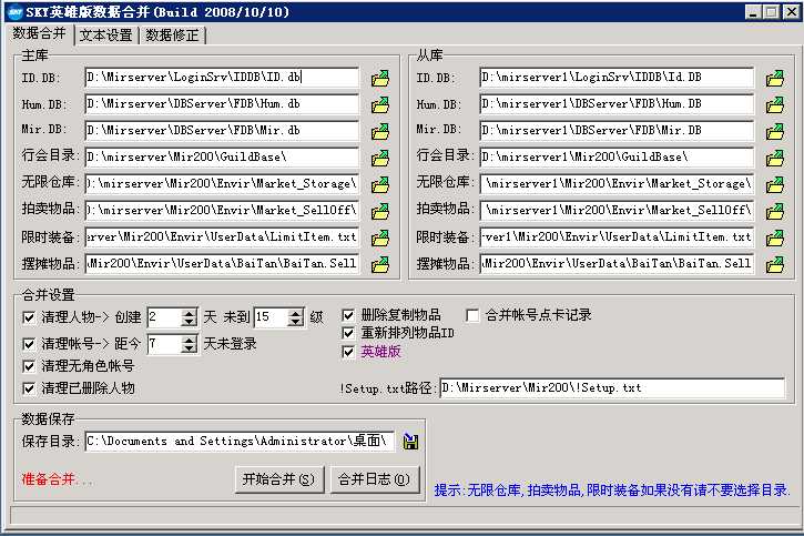 然后 我们用软件 读取两个服务端里面的 人物 ID 摆摊 行会 等等这一系列文件 把两个区的数据合并到一起