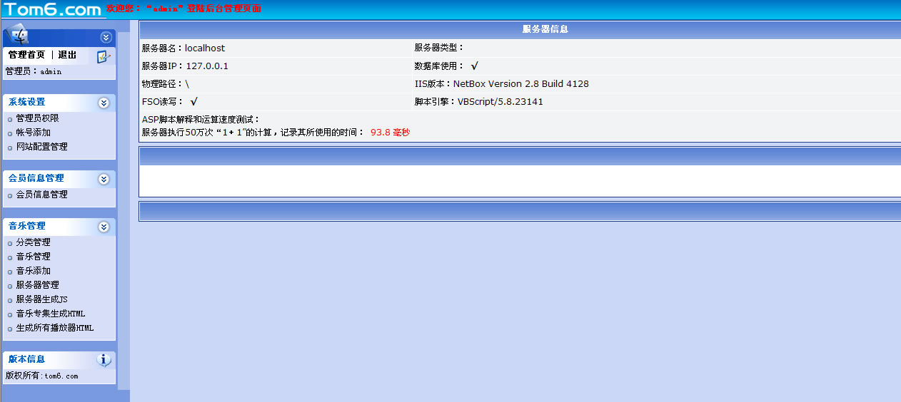 1,程序后台地址 www.tom6.com/admin/ (tom6.com处替换为你的地址)