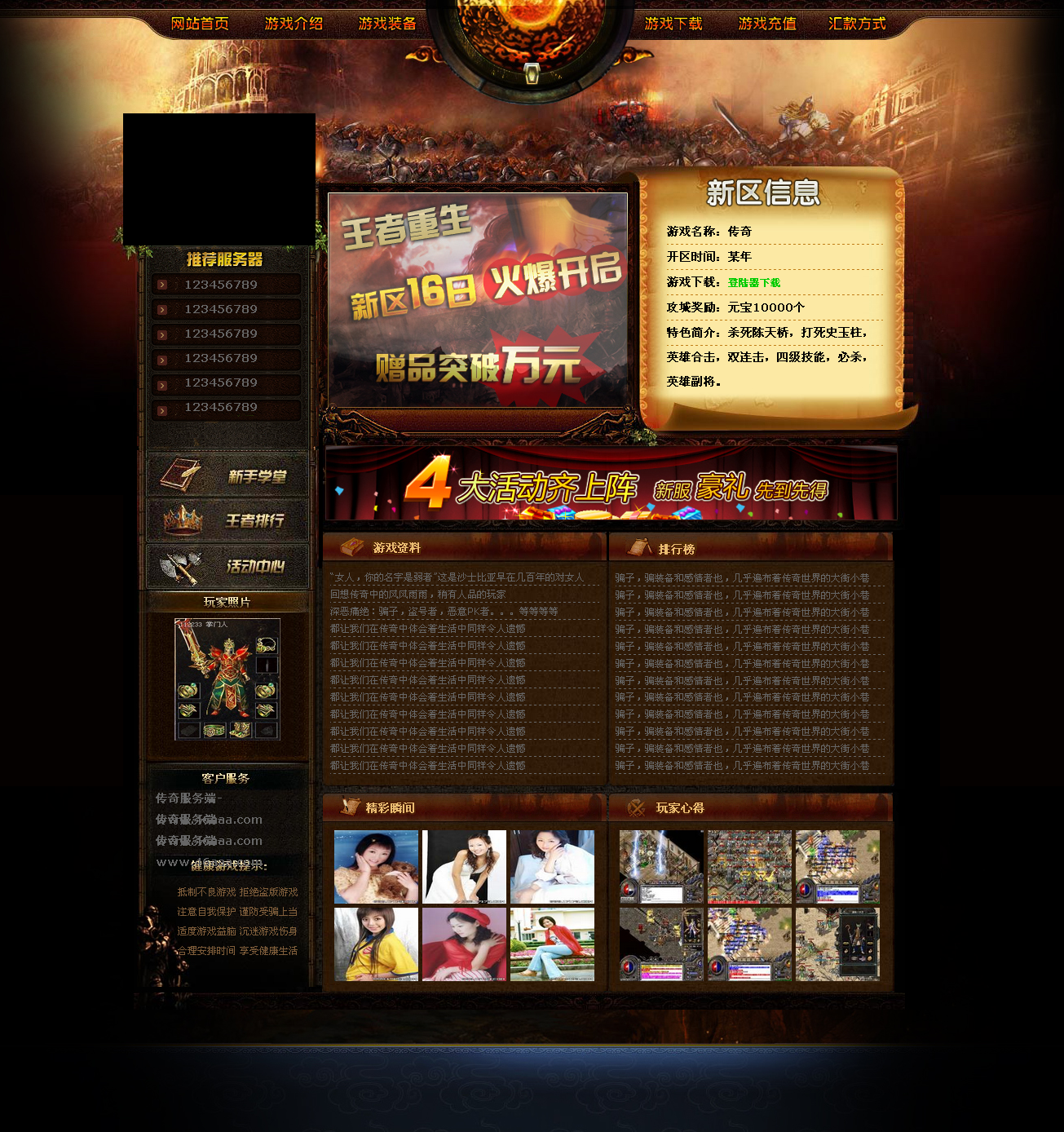 1:目前市面上大部分免费模板都有加水印或是程序有残缺,我们都知道作为传奇私服的门面,拥有一套大方简洁绚丽的开区网站是很有必要的。