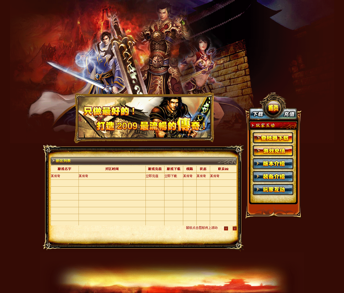 **目前市面上大部分免费模板都有加水印或是程序有残缺,我们都知道作为传奇私服的门面,拥有一套大方简洁绚丽的开区网站是很有必要的。