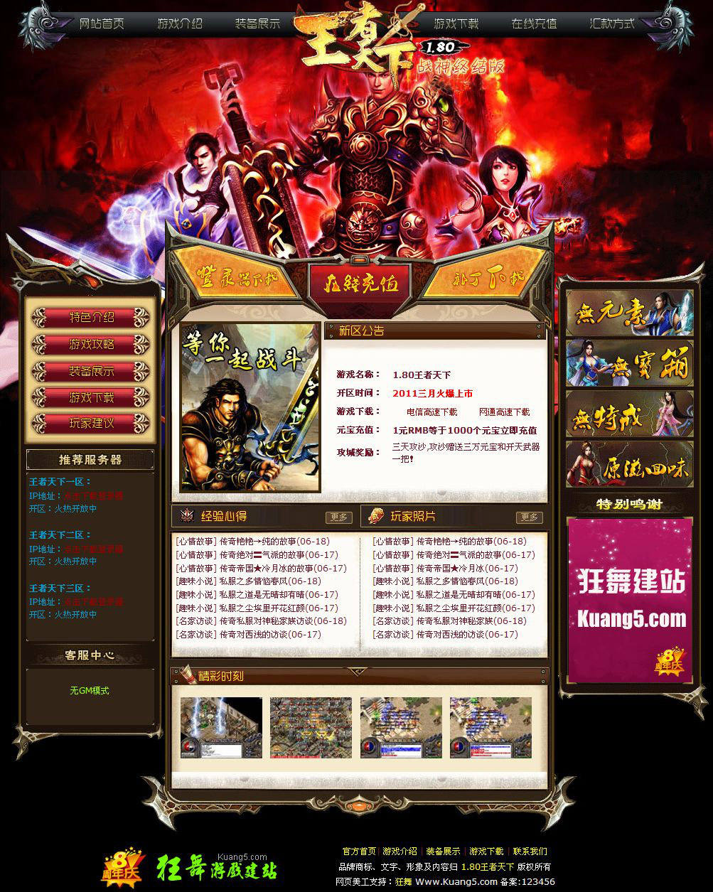 立即下载狂舞网提供游戏网站模板(王者天下)