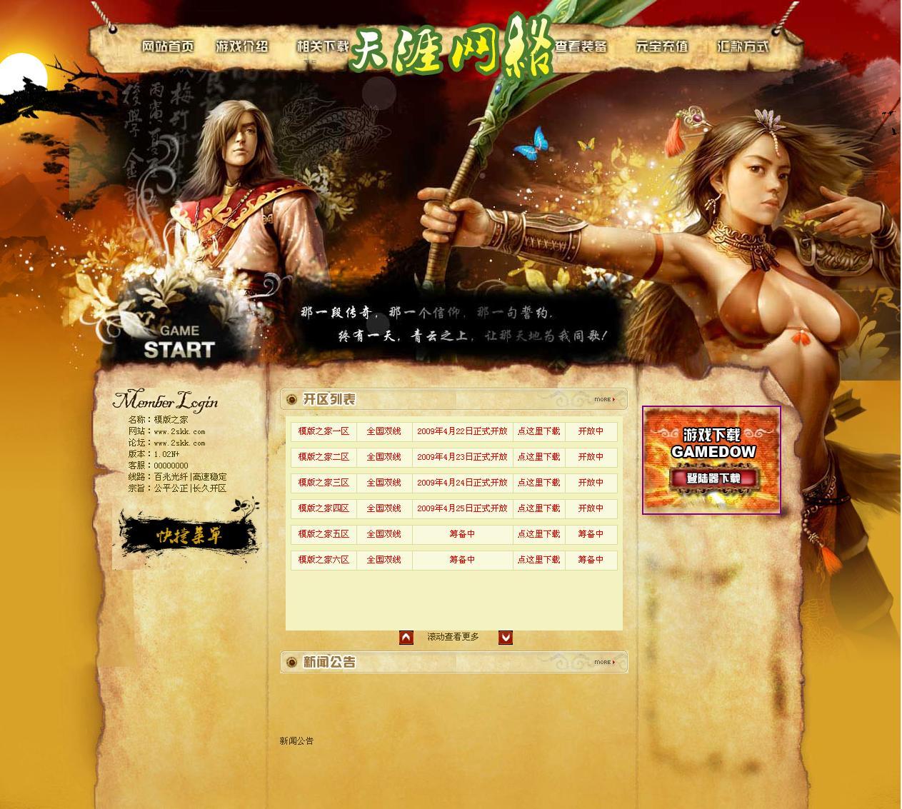 简介: 专业的美工,漂亮的格局, 游戏人物为背景,更突出游戏网站的魅力!