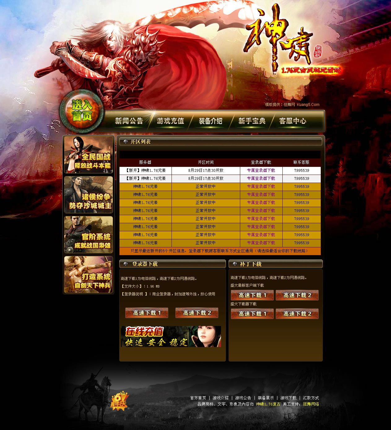 狂舞网提供游戏站引导页模板(神啸),静态html页面