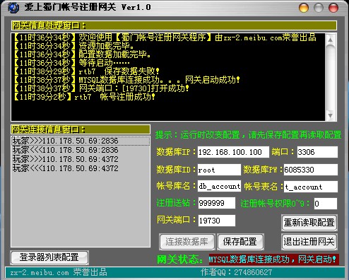 使用说明:打开帐号网关,配置好您的数据库各项设置,连接数据库即可!