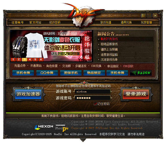 | 软件类别: | 登陆器类 - DNF登陆器 |