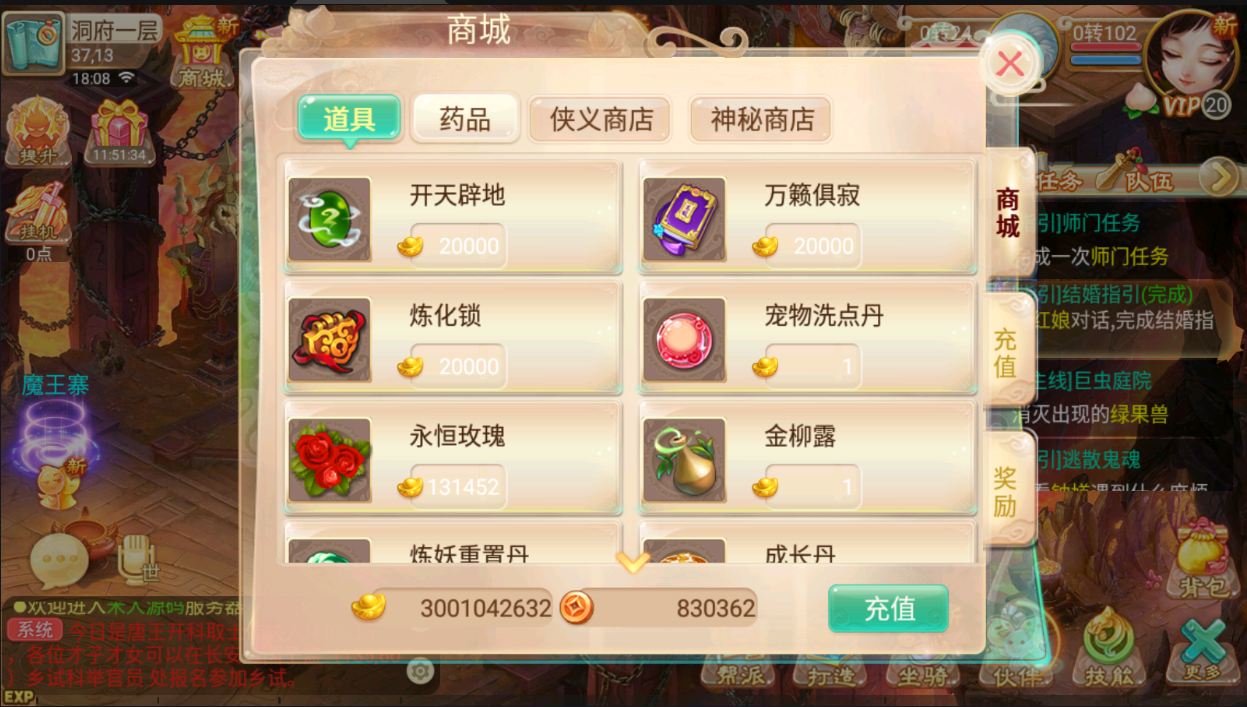 活动:地宫,凌烟阁,封神遗迹,无间地狱,渡劫,人物宝宝修炼,帮战,暗战,年兽入侵