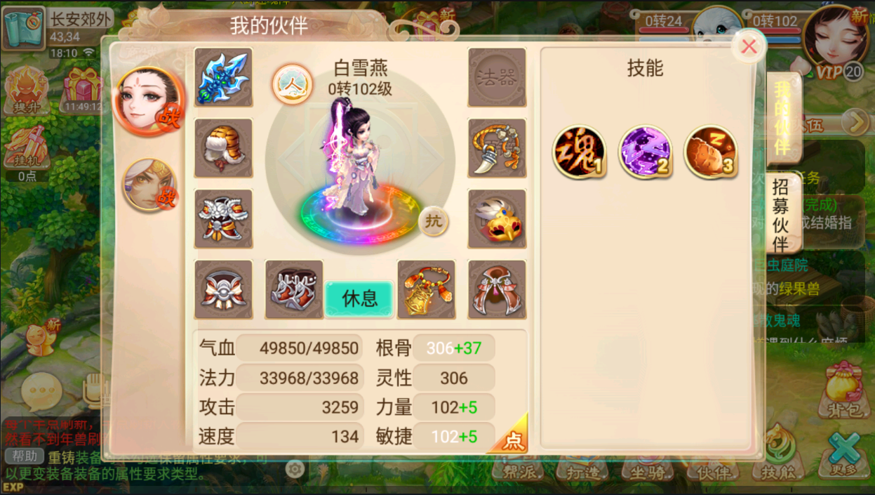 d.加2个新宝宝成长初值成长1.219气血1440法力6480攻击600速度5520 宝宝技能主动技能减速五个单位,一个先发制人!