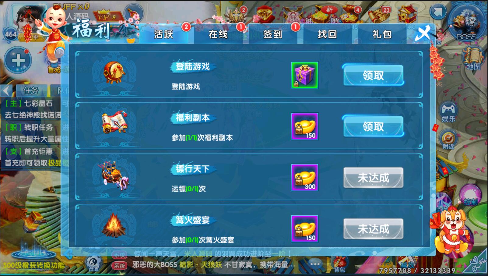 上线奖励修改---此处在服务端内修改,修改后需要重启服务器。