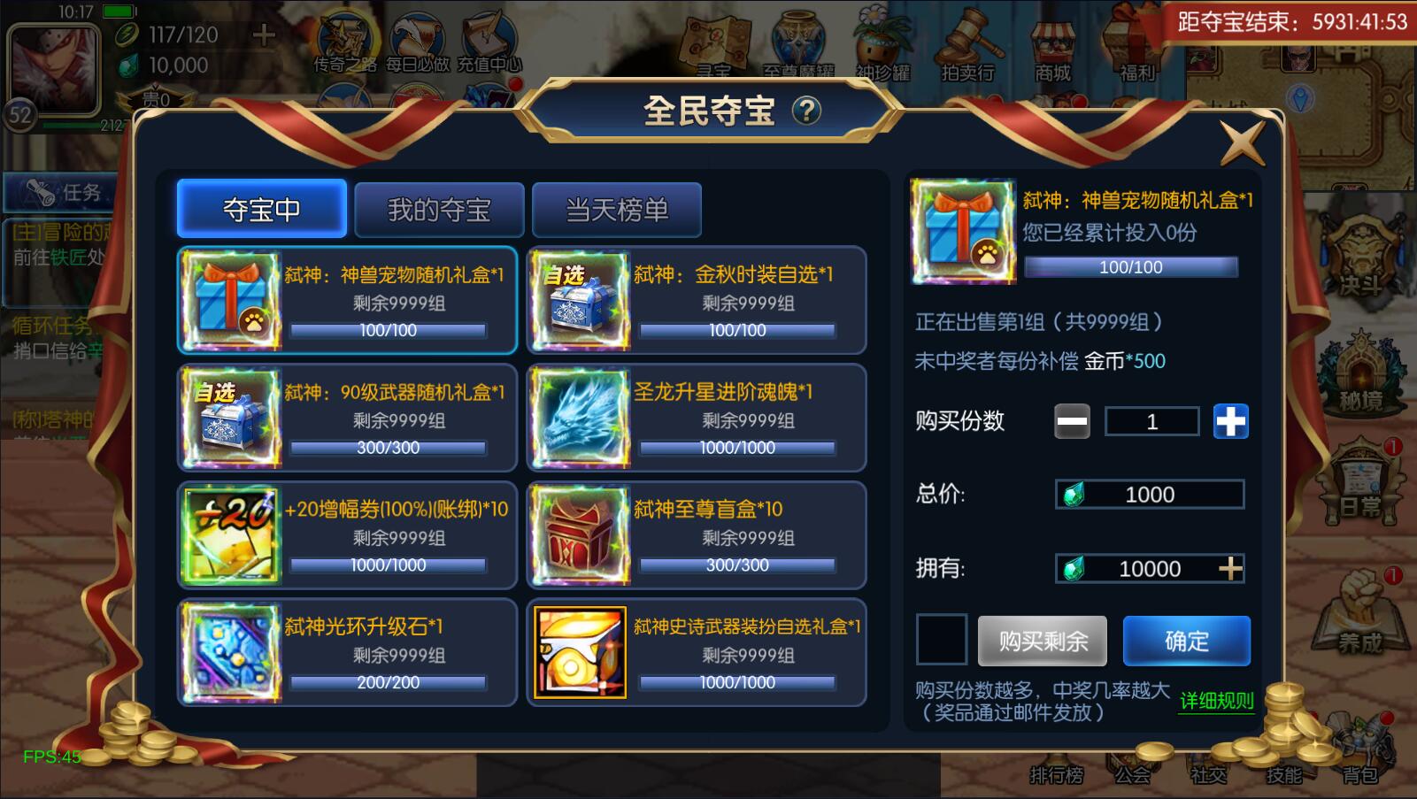 5.剑魂大拔刀,神兽宠物14个+自选、随机礼盒