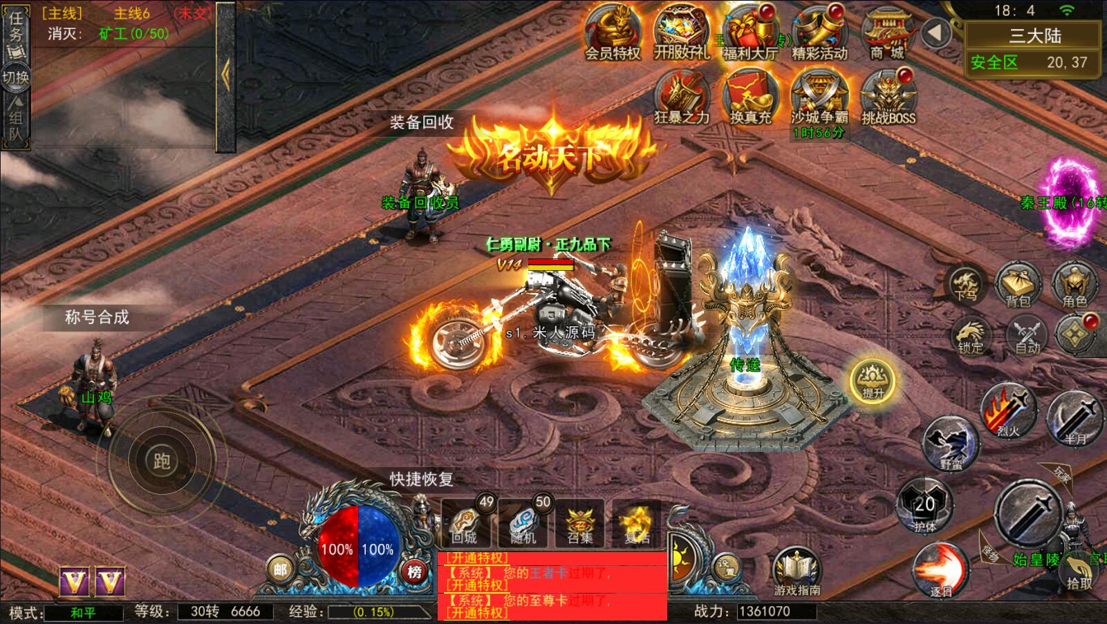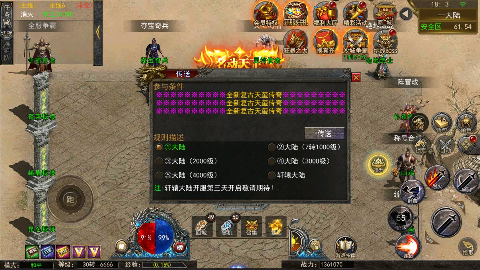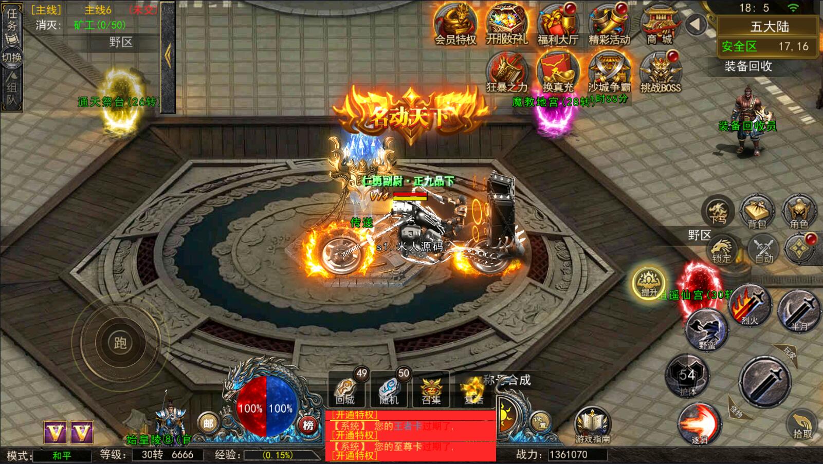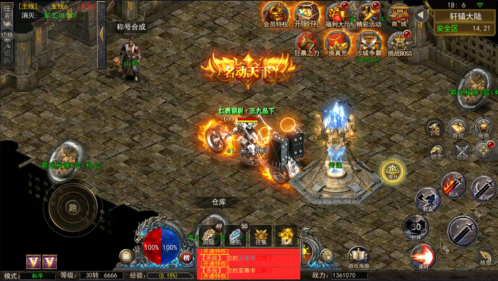 5.等级达到1000级可以打[野外BOSS]了爆率搞还掉珍惜道具和灵符.