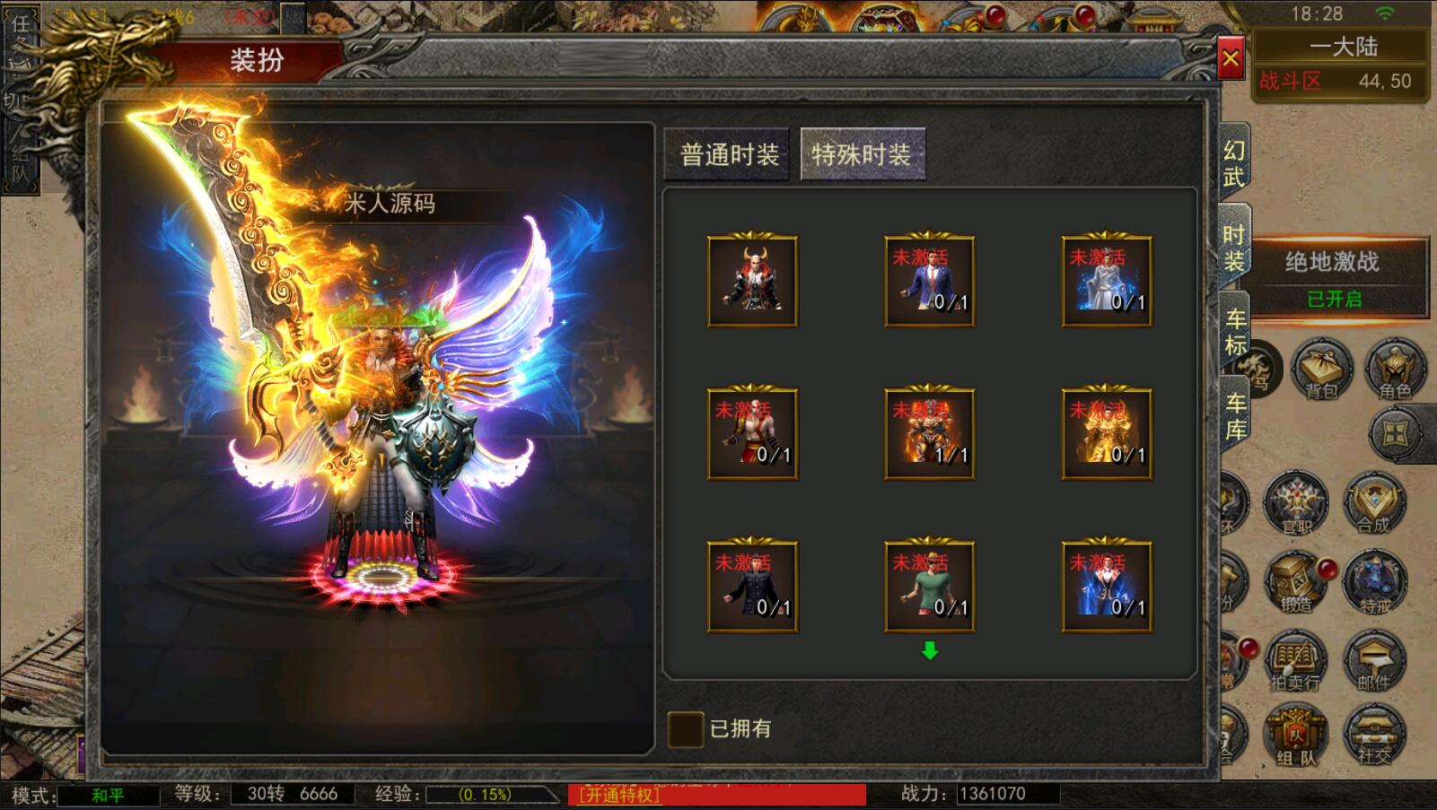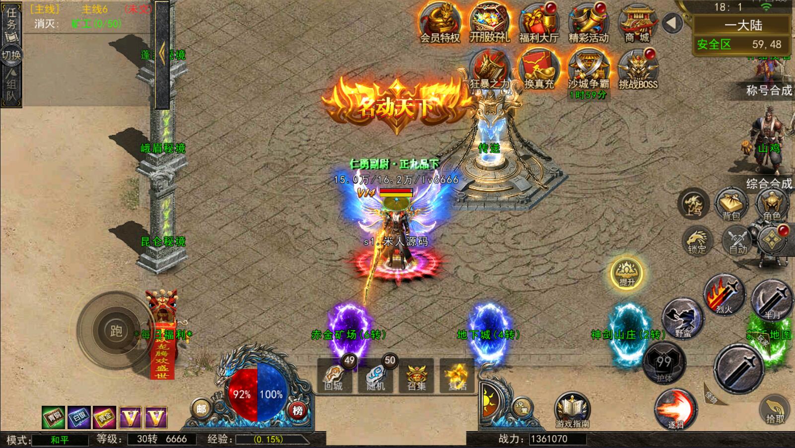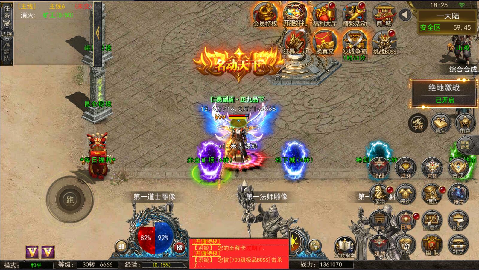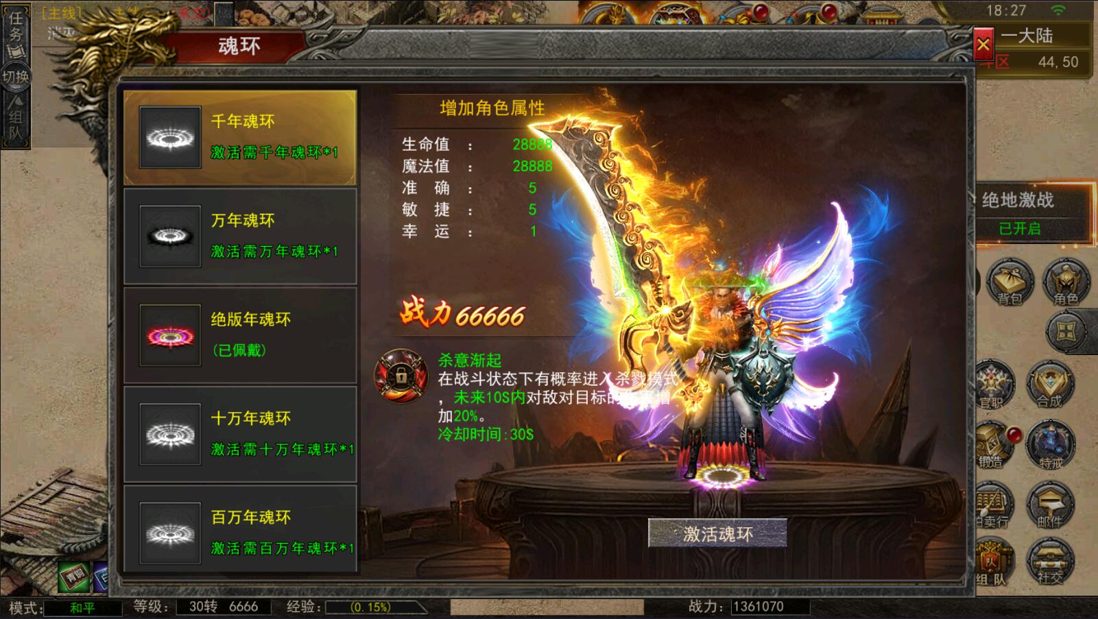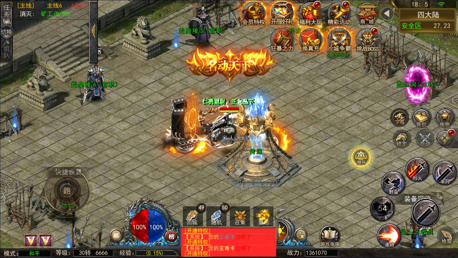 5.等级达到1000级可以打[野外BOSS]了爆率搞还掉珍惜道具和灵符.