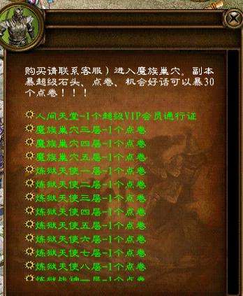8/人间天堂-1个超级VIP会员通行证是要1个超级VIP会员通行证才能传送里面BOSS重新改暴超级石头和补天注意:在人间天堂暴补天用不了1个小时就能打到1套补天和石头