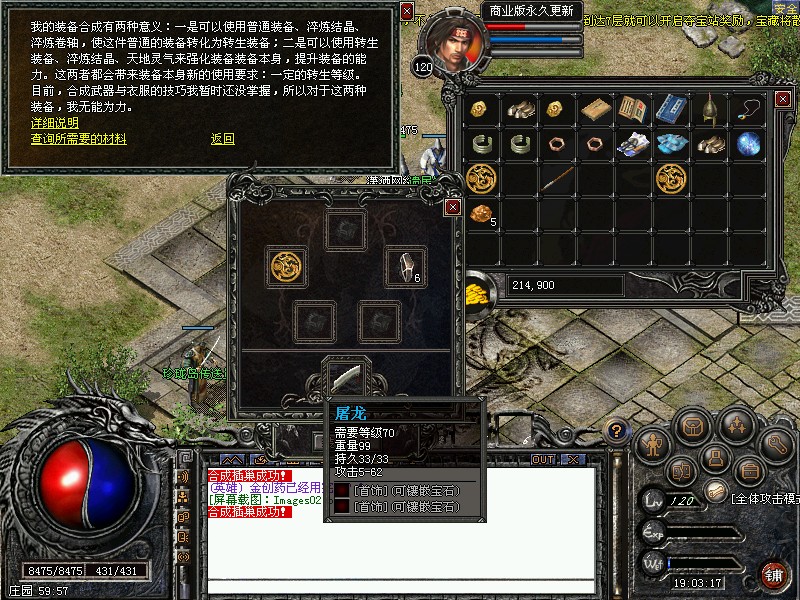 此版新增盛大装备打孔、宝石合成、装备镶嵌宝石等功能,