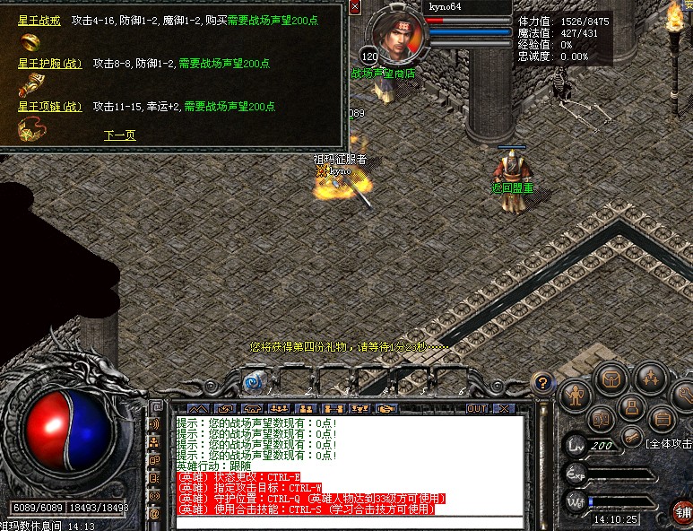 在战场中杀怪有几率获得战场声望,战场声望可以兑换战场装备和雇佣战场英雄