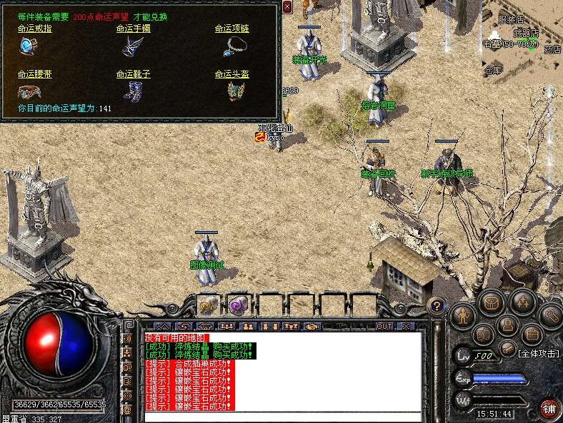 羽化登仙可以获得属性:攻击+50,魔力+50,道术+50