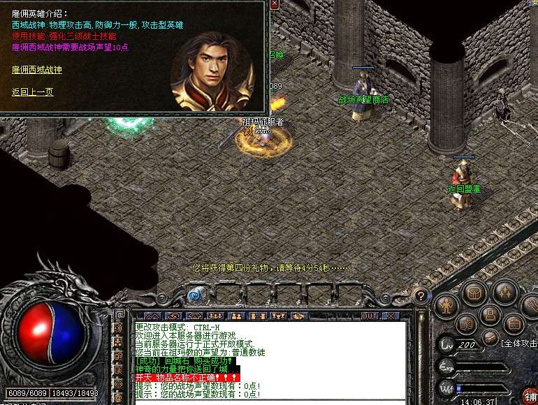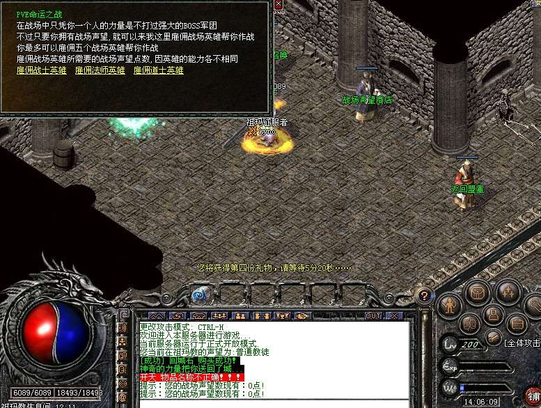 战场分为PVE和PVP两种,在战场中杀怪有几率获得战场声望,战场声望可以兑换战场装备和雇佣战场英雄