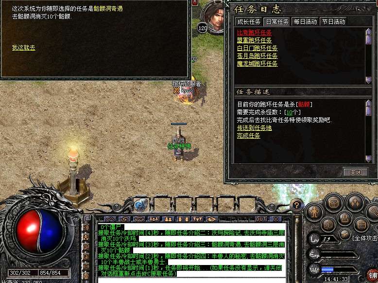 升到40级之后会赠送装备礼包,然后去做盟重跑环任务,盟重跑环任务共有10个任务,同样每次接取任务都会进行随机选择。