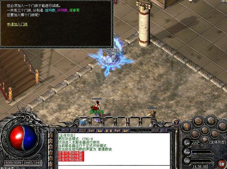 新人上线要选择阵营,分别为沃玛教,祖玛教,每个阵营都有自己的专属装备(类似战场套)
