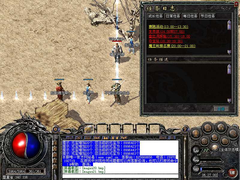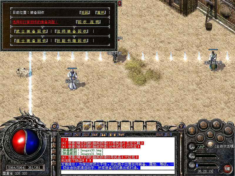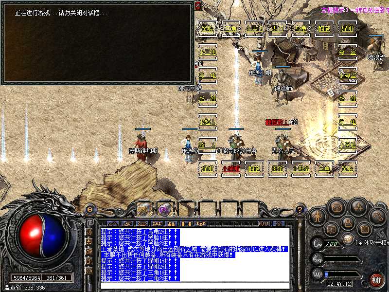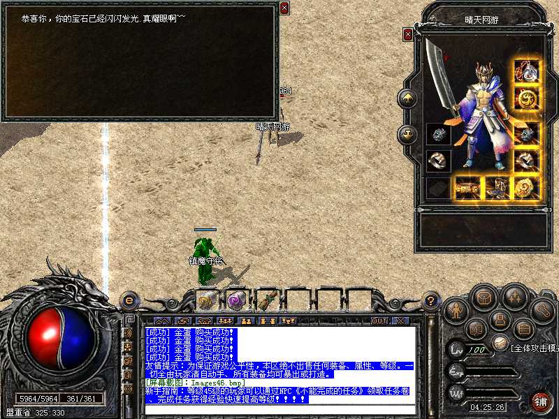 100%仿盛大,与盛大同步,新加入元宝抽奖.装备发光.表情界面.盛大外传任务系统和加入了自己的独特的任务系统!