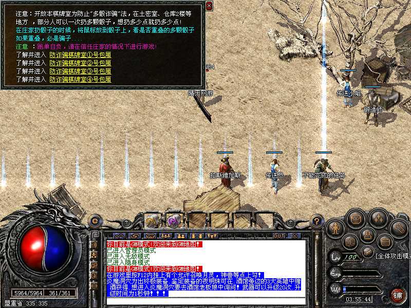 登陆本服务器需要专用登陆器,否则不能登陆,本服务器禁止任何外挂,发现使用脱机等外挂者,不管是否花钱,立即永久封号,按F12呼出自带内挂,封穿人穿怪!