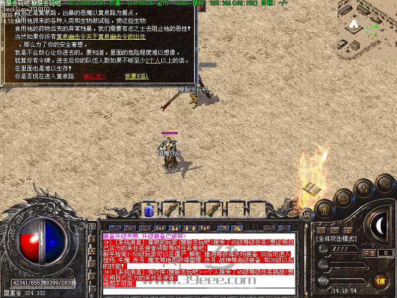 (请玩家注意安全,死亡后装备是会有机率爆出的.)
