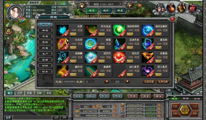 新手进去游戏可以直接买商城里的紫玄兵,所有商城里的道具都是无限量供应!