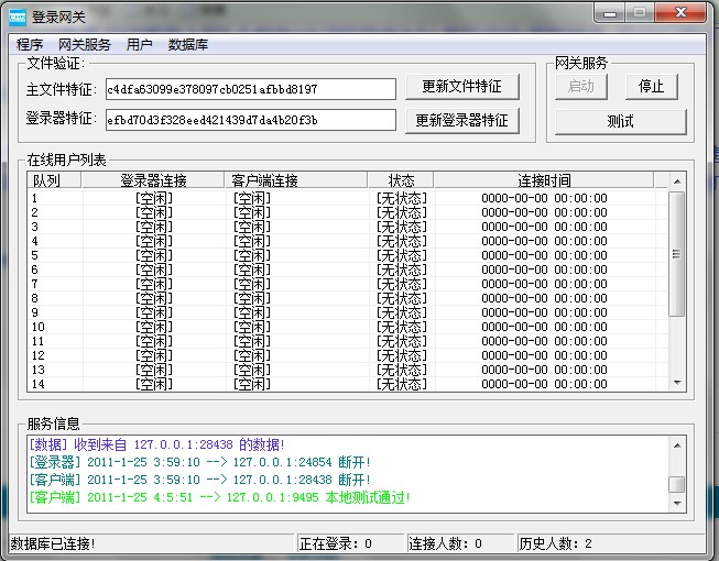 ,启动界面上的5个服务(必须的是前4个).然后启动 登陆网关 ,开启
