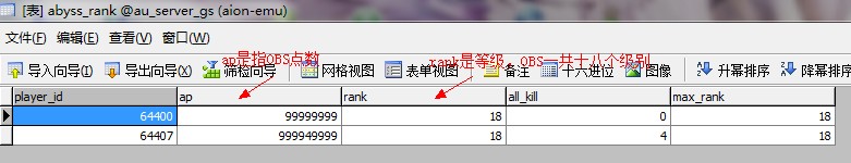 三, 这里需要说明的是,ap是OBS点数,rank是OBS等级,最大18级,超过会客户端挂掉,这个我已经尝试过了