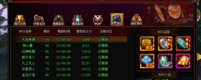 世界BOSS刷新,每半个小时刷新一次!