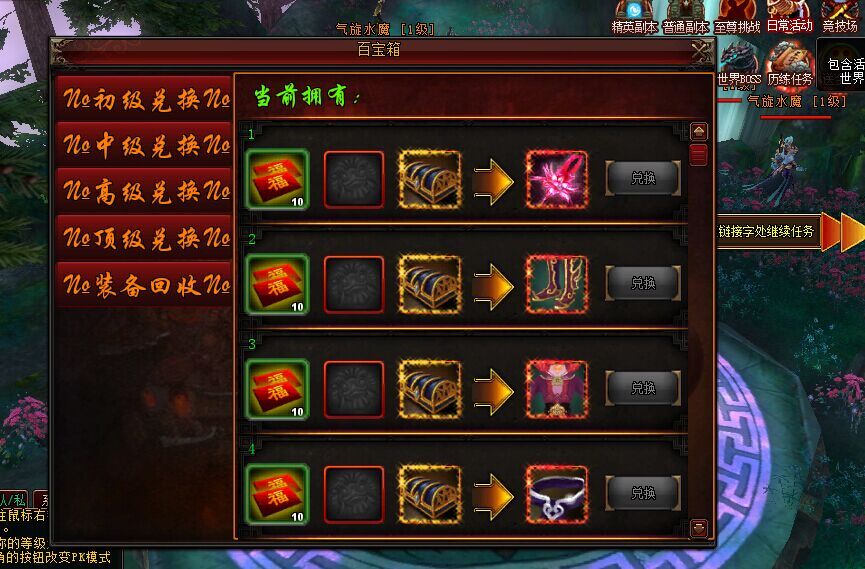 装备兑换,装备回收: