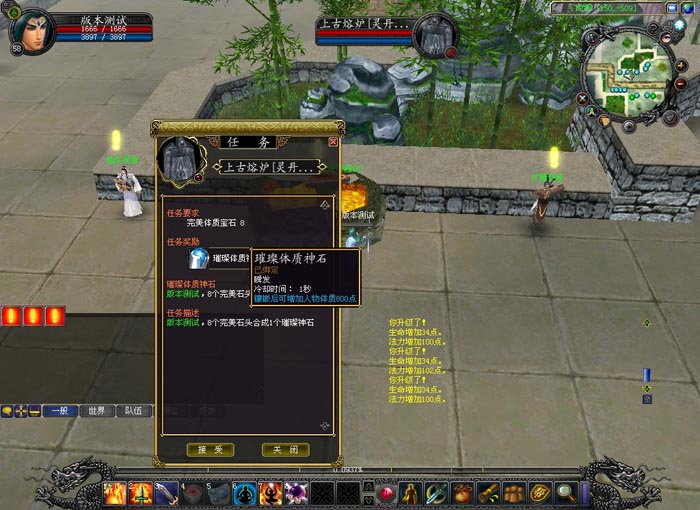 第一个任务,可领取900万培元丹任务,金翅鸟的请求送绑定金290,传音符20。