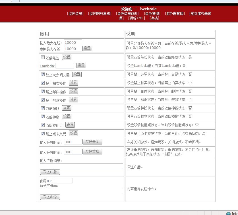 6.修正服务端后台不能正常打开的问题(原版端带的后台,是完美的,貌似没啥用,但还是保留了,可以设置双倍经验)